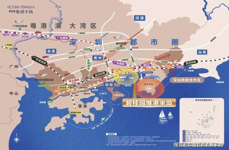 项目一路直通广惠高速亚婆角出口、惠深沿海高速小径湾出口;毗邻惠州南、惠东2大高铁站;距香港莲塘口岸约60公里;环抱惠州机场、深圳机场、广州机场!