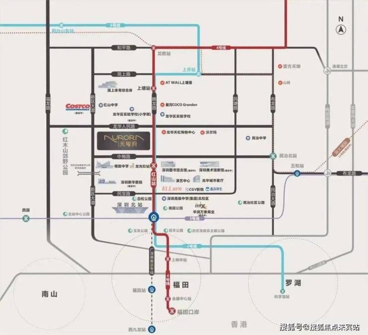 安宏基天曜府距离地铁4/6号线红山站约450米,1站到深圳北站,换乘5号线,2站直达香港西九龙,深圳北站作为深圳核心地铁枢纽,深圳市内1站通达福田站、光明城站、坪山站,周边还有民治大道、留仙大道、梅观高速等多条快速干道