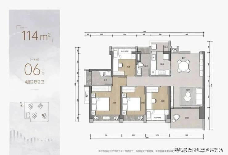 建面约116㎡的全南向户型