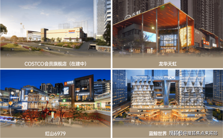 近享醇熟商业,片区超200万方商业体量,超越福田CBD商业集群,周边COSTCO(会员招募阶段,预计年底开业)、龙华天虹、红山6979、蓝鲸世界(在建中)等标杆商业环绕。