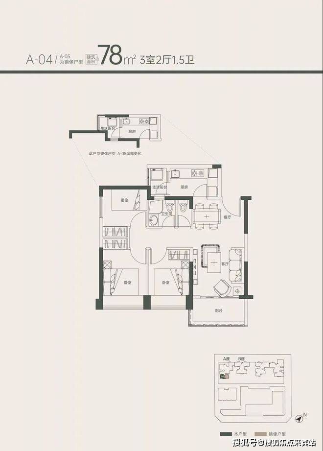 78㎡能做到三房+1.5卫+双阳台,功能性已经可以吊打科技园100㎡的新房。户型设计比较方正,1.5设计比较人性化,毕竟若三四口之家居住,多个马桶生活质素会提高很多。