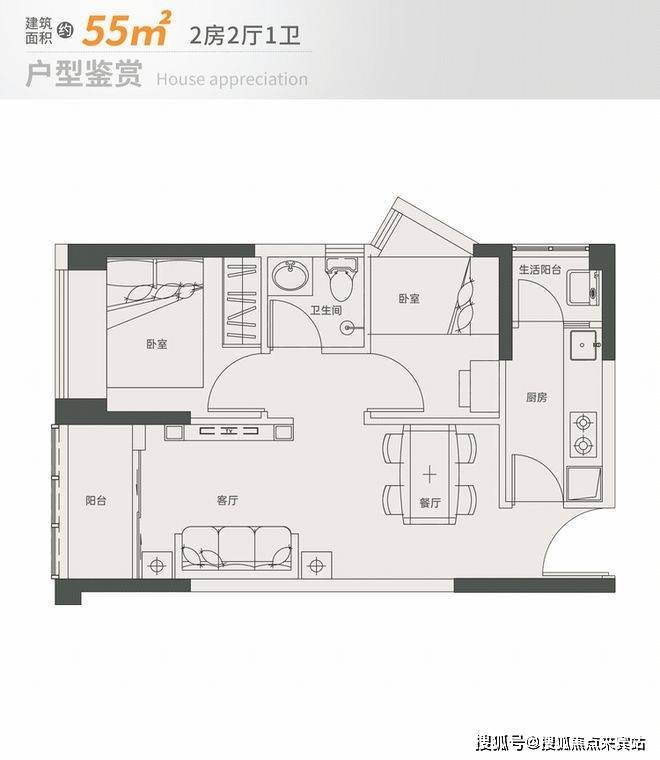 这种面积段产品如今在新盘市场上很少见到做到两房+两阳台的,对于小户型来说多个生活阳台是大加分项。