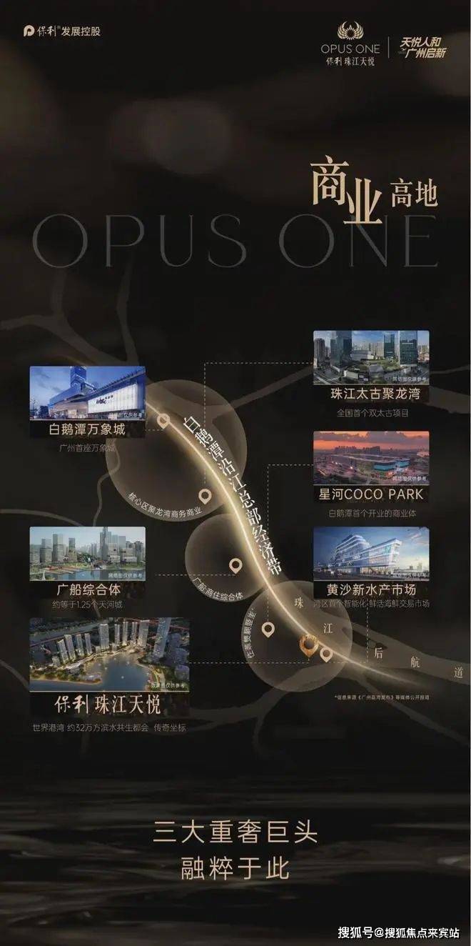 ◎展翅白鹅潭,传奇再续2012年,首座保利天悦在琶洲诞生,是珠江两岸具有代表性的江景楼盘之一。历时12年,保利·珠江天悦作为广州第二座天悦,位于白鹅潭沿江经济带,打造约32万㎡滨水综合体。