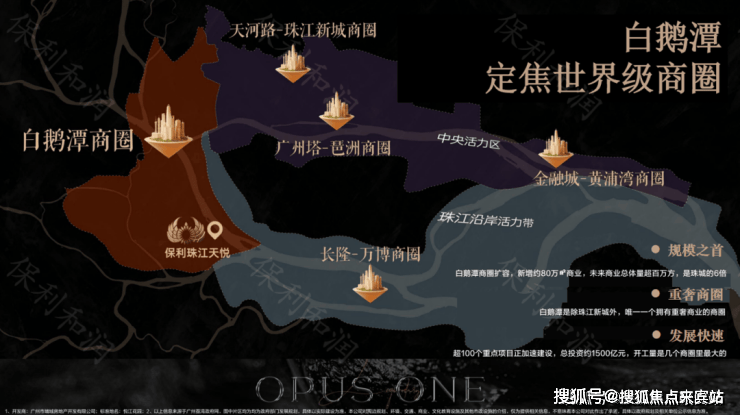 今年3月,白鹅潭官宣扩容,以200万㎡的体量,登顶广州5大世界级商圈之首,既是环珠江经济带ZUI后一片可以大规模连片开发的土地,也是除了珠城外,惟一拥有重奢商业的商圈,是未来广州城市发展的方向。