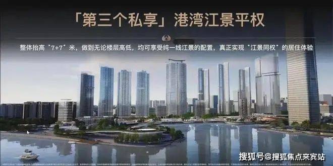 ◎【第三个私享】坐拥约700米看江面,纯一线江景湾居为尽可能利用38米宽港湾地,住宅整体抬高14米,与港湾融合,享受三江汇流景观,纯一线江景。