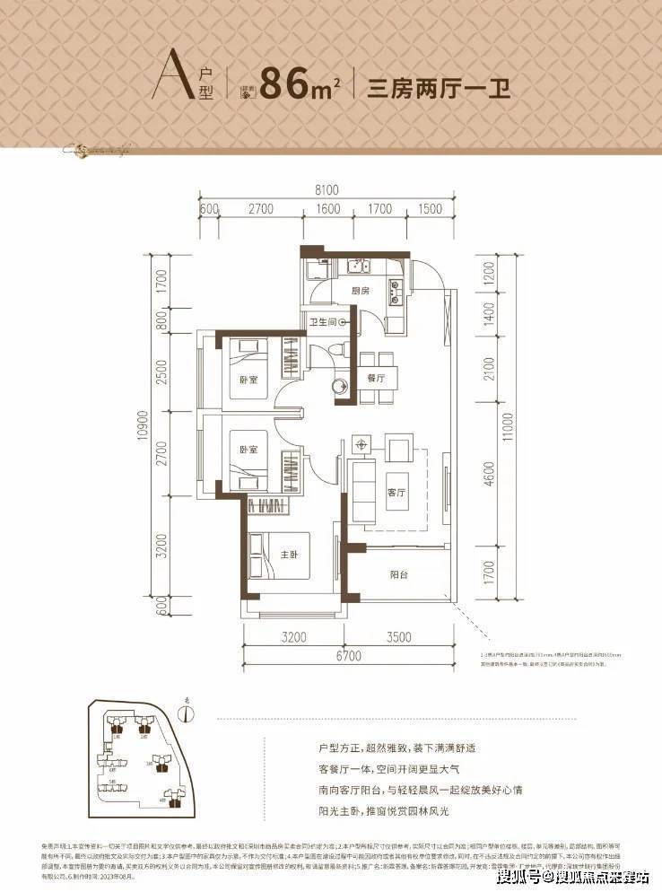 A户型:约86㎡3房2厅1卫