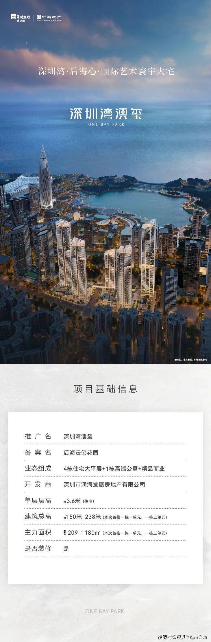 华润置地与中海地产两⼤世界500强巨擘,以超越时代的远见与实⼒,联袂执笔深圳湾,为全球⼈物敬献永恒的资产典藏——深圳湾澐玺。