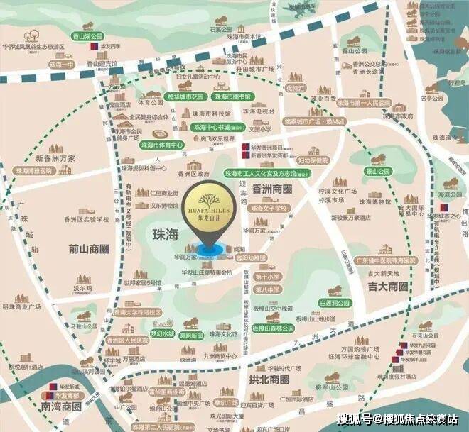 华发山庄择址珠海最醇熟板块,直面迎宾北路,坐享城央财富与烟火,核心优势尽显稀缺与高端:
