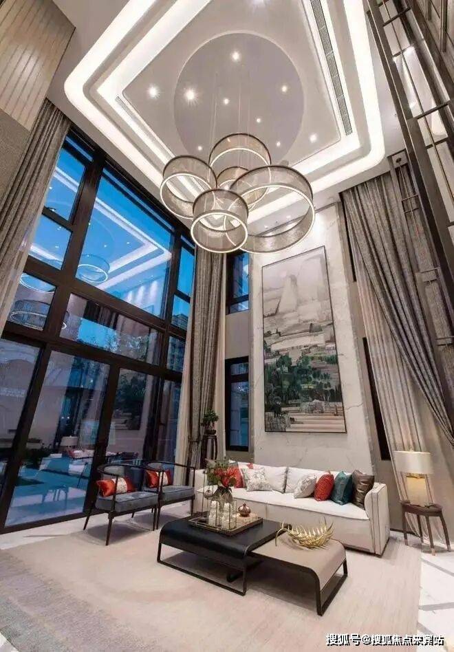 ⑥首层注重社交功能,7.2挑高客厅,超10M面宽,近20㎡的中西厨,还原煊赫大宅该有的尺度。二层更为私密,是全家共享天伦的空间