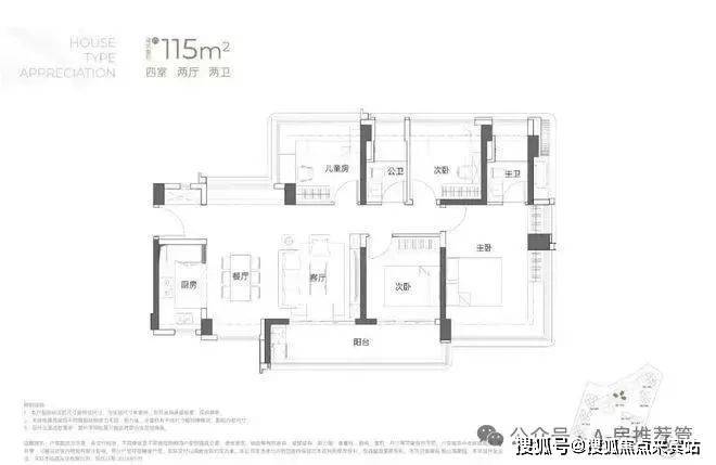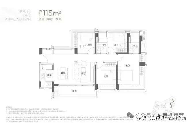 建面约115㎡4房2厅2卫