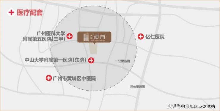 2所三甲医院:中大附属第一医院(三甲)约500米,广医大附属第五医院(三甲)约1.2KM