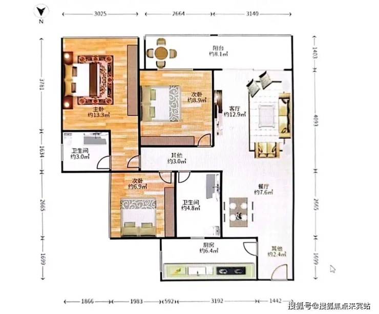 3号B座C户型约74㎡