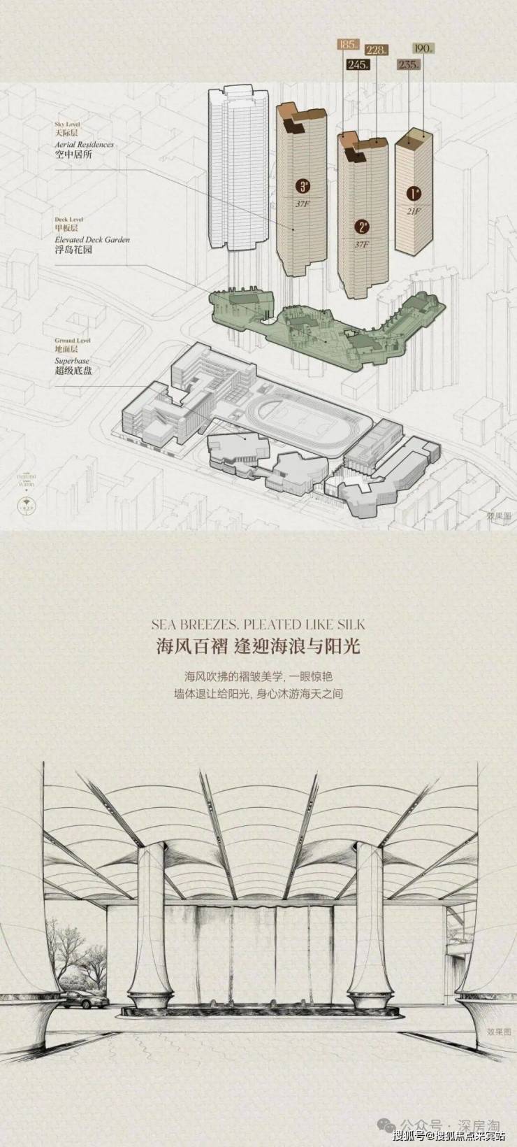 另外,项目的设计风格也算是个亮点,采用的是“浮岛甲板”设计策略。
