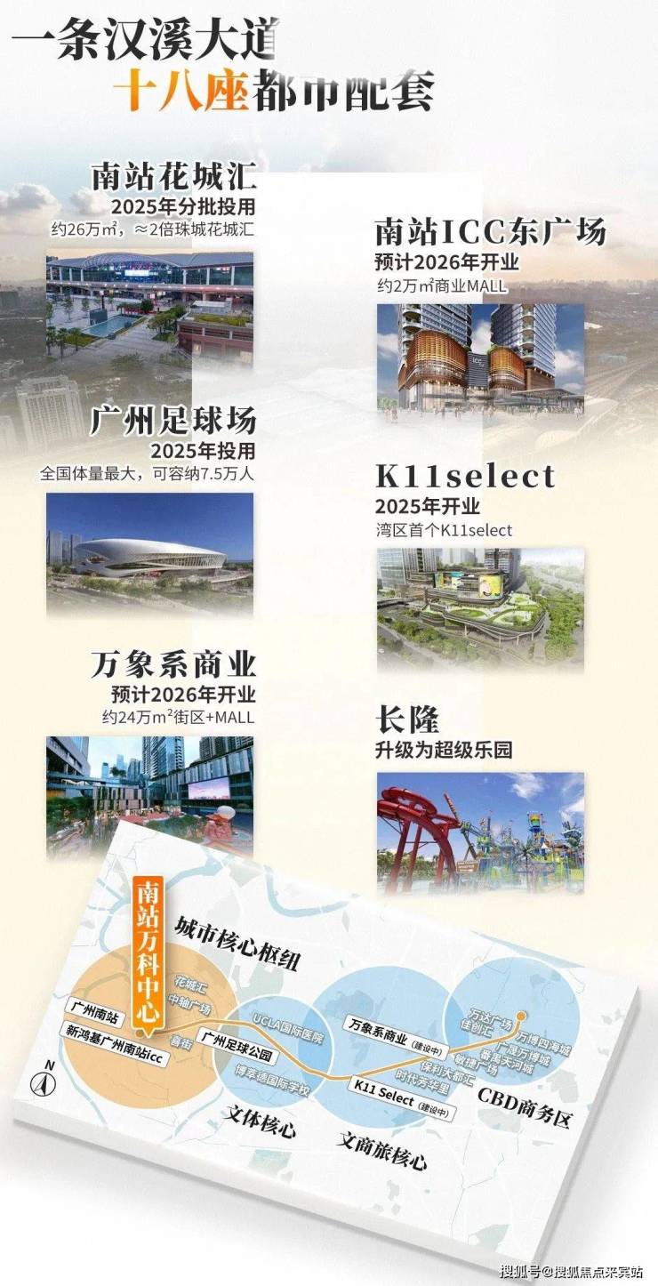 从南站到足球场,再到长隆万博,一站式的枢纽、文体文旅、商圈等资源紧密咬合,自由流动。