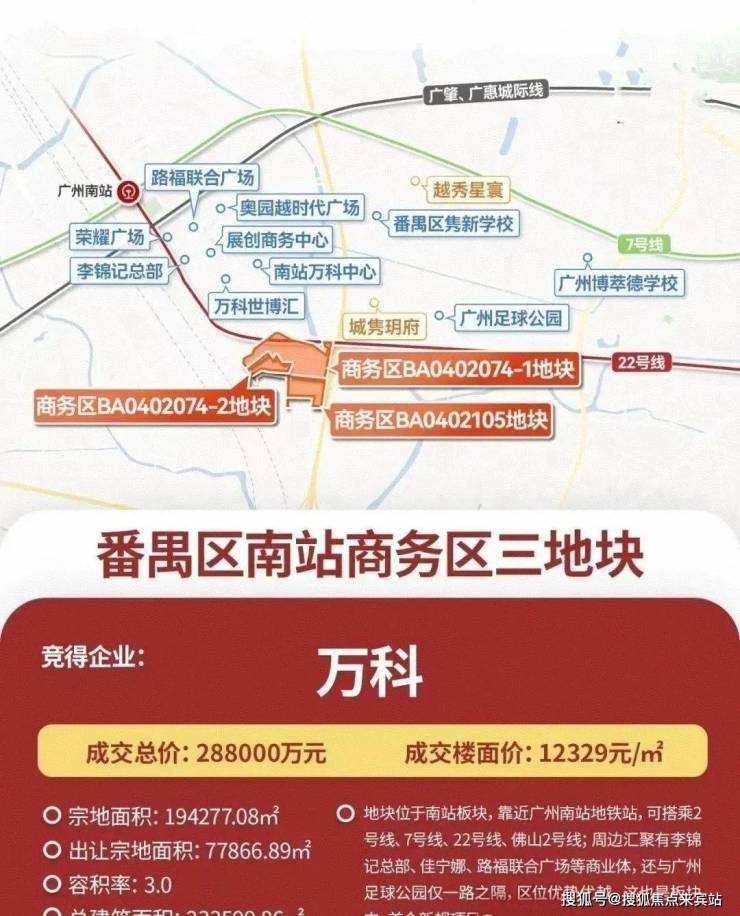 去年12月17日,万科以底价28.8亿拿下广州南站商务区三宗宅地,总面积约23万㎡,折合楼面价约1.1-1.3万/㎡,铺开了南站3.0时代新的深度求索。
