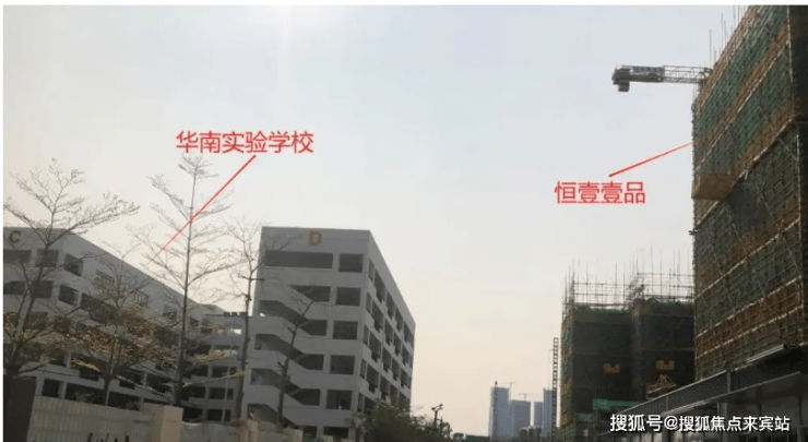 项目向南朝向华南实验学校,北靠春华四季园。其中,北侧楼栋与春华四季园(二期)36栋、38栋的楼栋距离为35米。