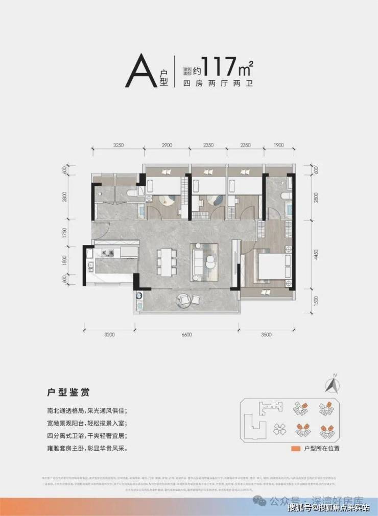 稀缺南北通透、大横厅阔绰4房,约6.6米阔景阳台,四分离卫生间