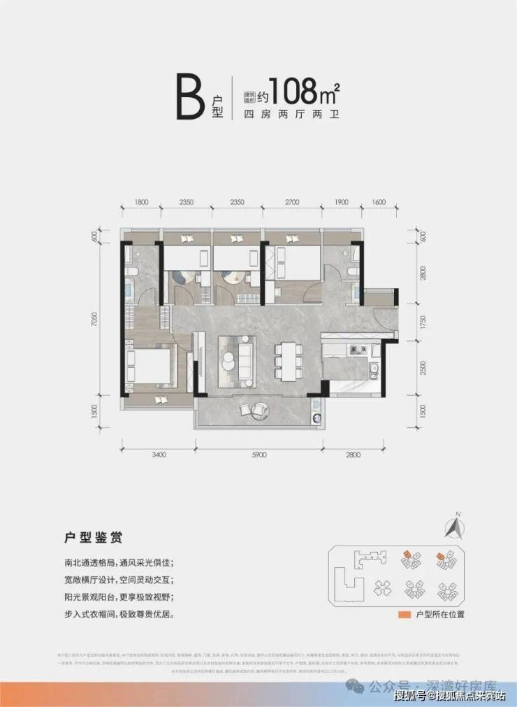 稀缺南北通透4房,约5.9米阔绰阳台,三分离卫生间