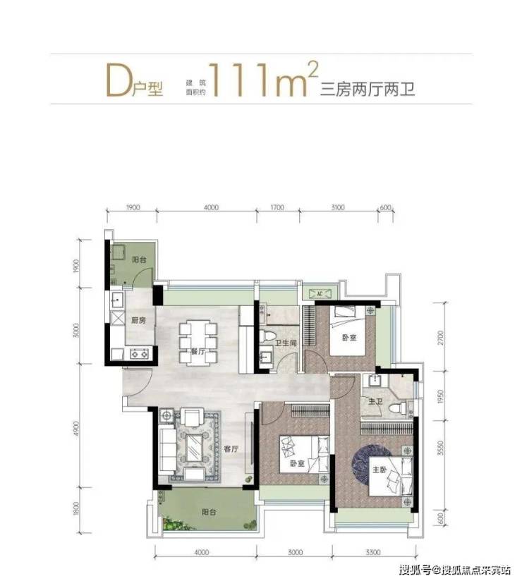 ●110-115㎡3房:双阳台,主卧套间设计,二胎家庭或三代同住无压力,得房率87%-89%(碾压同面积段竞品),不过110平A户型进门就是洗手间,洗手间门口对着餐厅的位置,这个户型需要注意,介意的慎选。