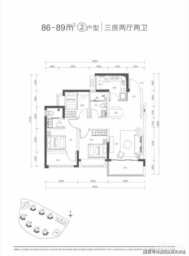 项目新增在售户型,[86-89①户型]86.0平米,3室2厅2卫,西北、北、东北朝向,304万/套;[76-80m²户型]77.0平米,3室2厅2卫,北朝向,270万/套;[86-89②户型]86.0平米,3室2厅2卫,北朝向,304万/套;[115m²户型]115.0平米,4室2厅2卫,北朝向,410万/套。
