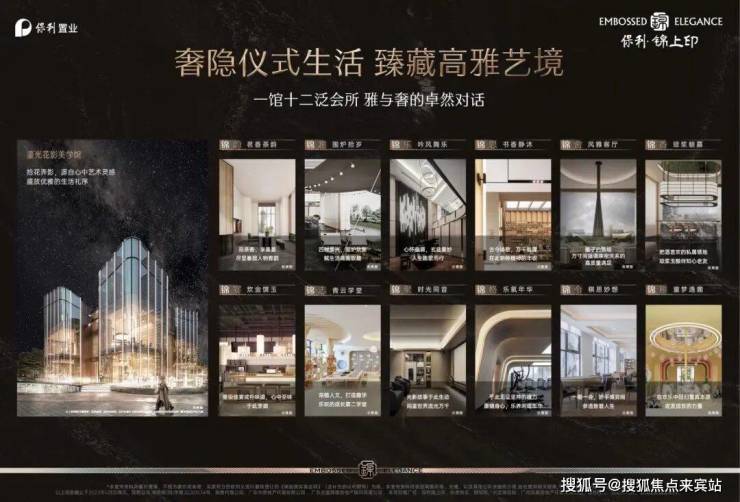 一座鎏光花影美学馆,十二个主题泛会所,实现会客厅、围炉、露营、健身、棋牌及儿童游乐等社交互动场景,为业主提供预约制尊享服务。