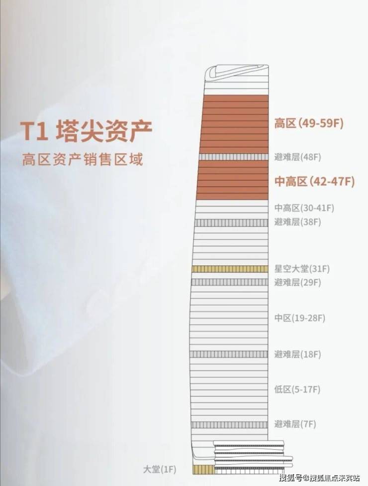 🔸顶层57-58-59三连层整售,面积约4666㎡,折后总价约4.4亿