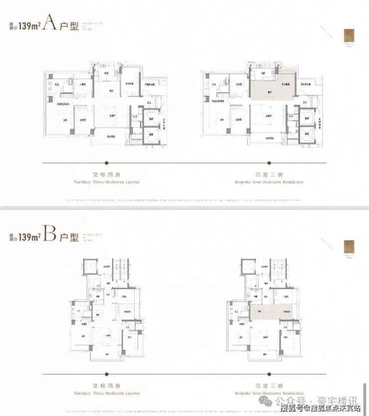 主力户型:139㎡4房2卫、176㎡4+1房3卫、194㎡4+1房3卫