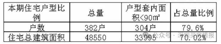 值得注意的是,在深圳住建局公布的项目信息中,户型套内面积小于90㎡达304户,占79.6%,由此可推出该盘得房率也一般。
