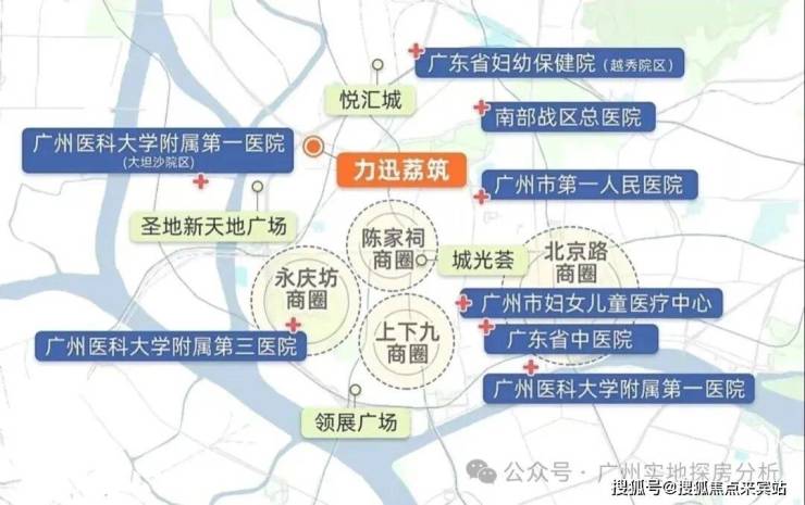 项目3公里范围内广州市第一人民医院、广州医科大学附属第一医院、广东省妇幼保健院越秀院区、南部战区总医院、广州医科大学附属第三医院、广州市妇女医疗中心、广东省中医院等。