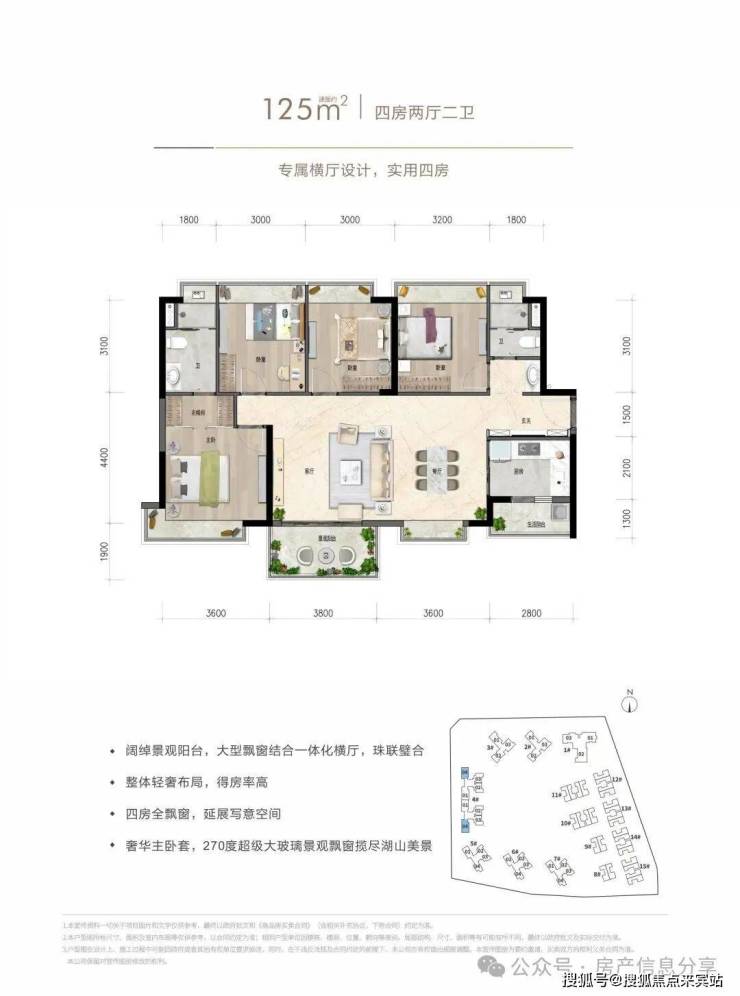 约125㎡四房两厅两卫:专属横厅设计,实用四房