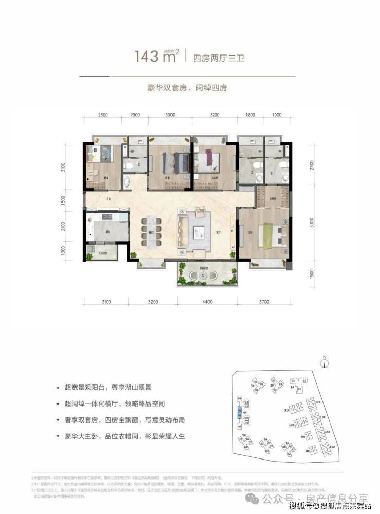 约143㎡四房两厅三卫:豪华双套房,阔绰四房🌰🌰世城悦湖花园开发商电话 ⇄4009620133 (开发商认证)🥐
