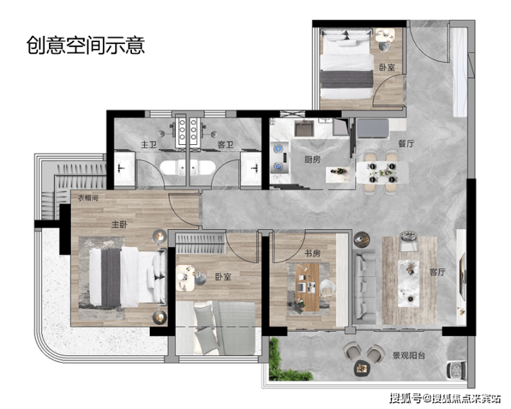 • 主卧270°弧形飘窗,舒享奢华尺度