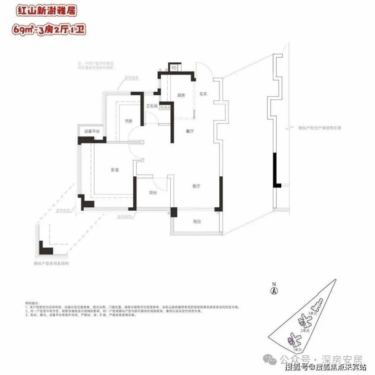龙华红山,联发新澍雅居预计2026年一季度取证入市,户型相当炸裂,面积有69平的2+1房1卫,79-82平的3房2卫,99平的4房2卫户型,共332套房源,价格方面可以参考附近前期入市的联发臻著雅居,备案均价7.3万/㎡,当时折后均价约6.4万/平,期房精装交付,目前营销中心暂未开放,户型图供参考
