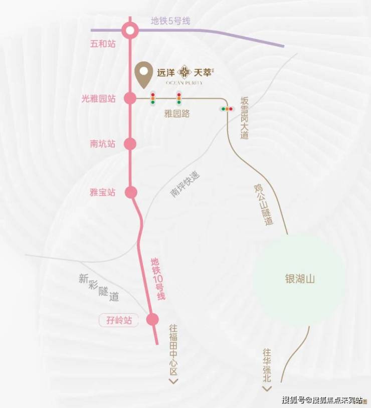 地铁配套:远洋天萃家门口就是10号地铁线“光雅园站”B出口,小区地下室直通地铁站,1站到五和枢纽站可换乘5号地铁线/深大城际,3站可到龙华深圳北站,3站到福田、4站到南山。