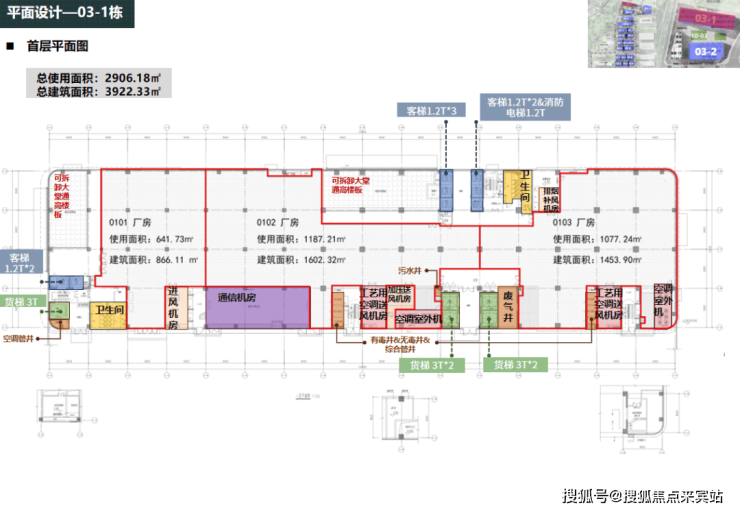 项目建面约101.9万㎡,厂房约81.9万㎡(34.9万㎡租赁+47万㎡销售),公寓2.5万㎡全自持,商业0.2万㎡全自持,食堂1.62万㎡全自持,是一个超大型“工业上楼”产业园区;
