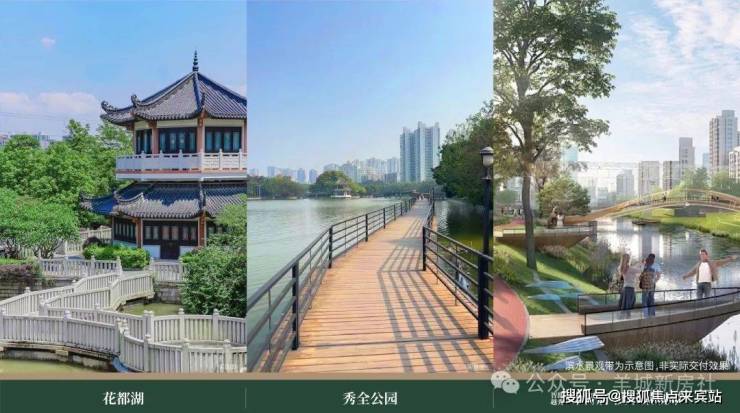 :围合式布局,超宽楼间距,结合滨水景观带、4A级花都湖公园等生态资源,构建“城市微度假”生活场景。