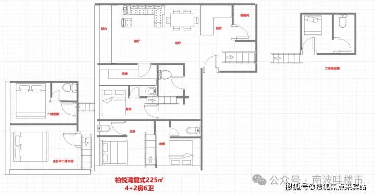 225-252㎡4+2房6卫,东北深圳湾+城景,西北前海湾+城景,东南深圳湾+大小南山,西南前海湾+大小南山
