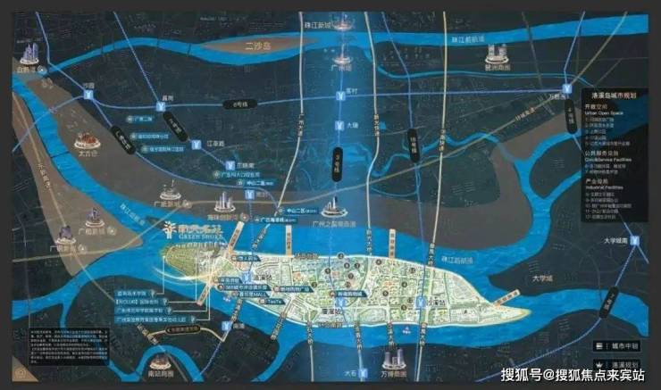 ①项目地处的洛溪岛,是继二沙岛之后,市中心第二个中轴岛,三江汇聚,处于城市中轴与珠江后航道的交汇处;