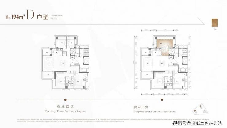 194㎡全景舱户型原报建是四房三卫(双套间)户型,偏厅结合2.4米的新规双阳台,景观面超过270°,观景开间达9.8米。