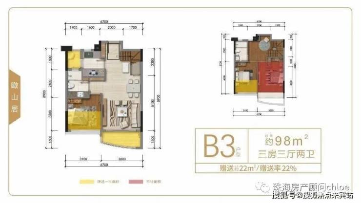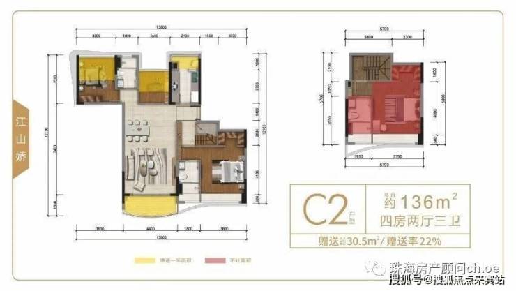 横琴独有空中跃墅,上下两层,且单层高度不低于3米,保证足够开阔的居住舒适。