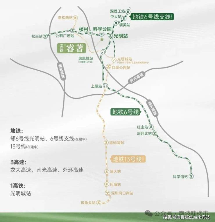 3地铁:邻6号线光明站、6号线支线 (在建中)、13号线 (在建中)