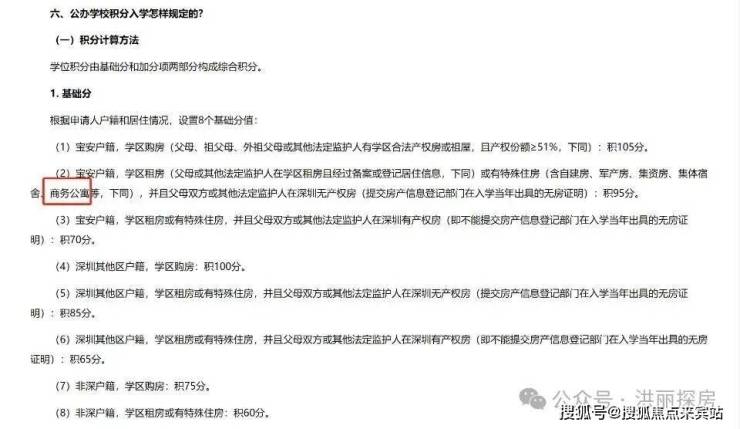 2023年6月5日,深圳市宝安区教育局发布《宝安区2023年秋季义务教育新生入学指引》,商务公寓属于特殊住房范畴,可根据申请人户籍和居住情况,计算学位积分。