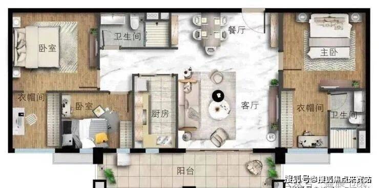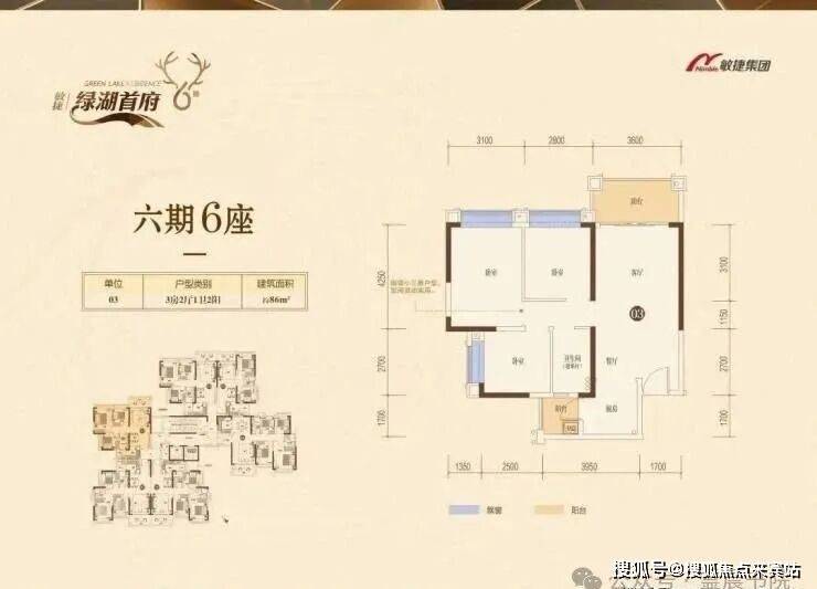 七期建筑面积约86㎡——菁英自在房 奢阔横厅主套设计】2房2厅2卫2阳(其中1阳可作为创意空间)