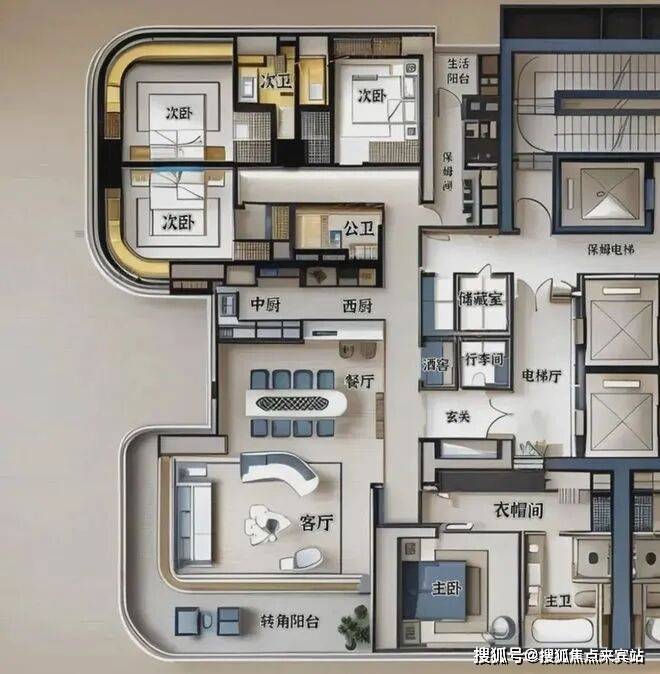 3梯2户:梯户比优越(平均1.5梯服务1户),日常高效便捷。是城市精英家庭享受高品质生活的理想居所,尺度与实用性完美平衡。