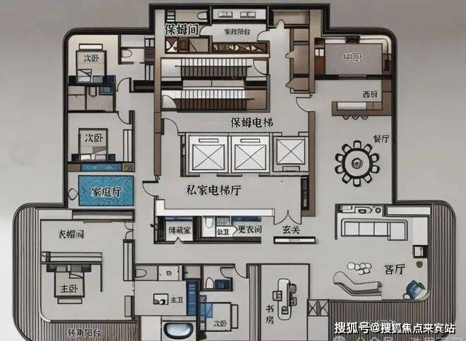 3梯1户:专属电梯厅与极致高效的3部电梯服务,归家即是尊崇礼遇。这是为城市领袖、世家大族打造的空中行宫,是身份与品味的终极象征。