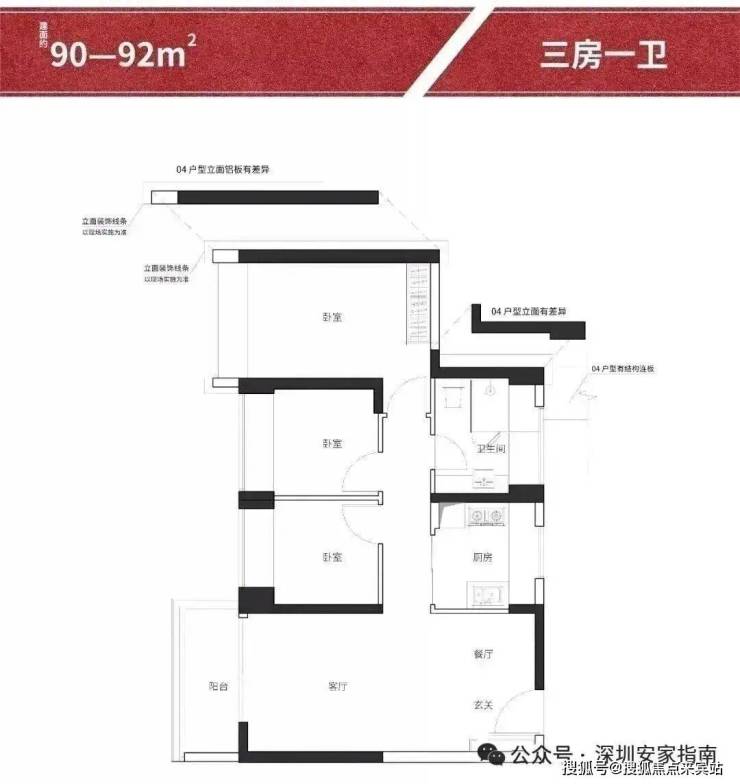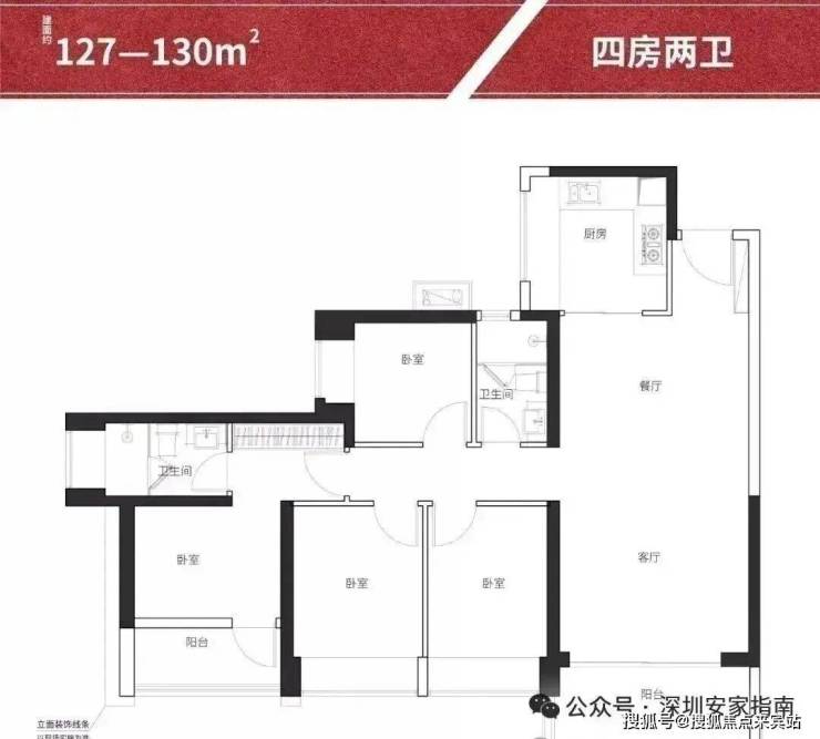 三房两卫传统户型,动静分离。总套数503套。东南或西南朝向,视野开阔。动静分区布局主要生活空间南向,光照充足。客厅带有大进深阳台宽敞明亮。主次卧开间进深比良好空间利用充分。餐厨空间紧凑实用,U型厨房自然通风采光。