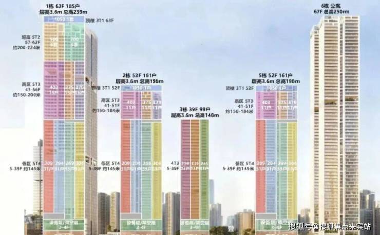 项目容积率7.59,限高250米,规划5栋超高层住宅,采用全玻璃幕墙设计,实用率高达92%以上,主力户型200㎡以上大平层。