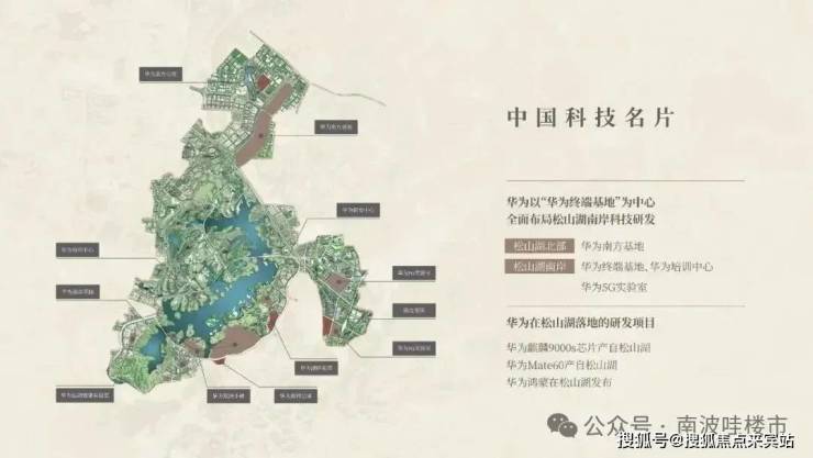 华为以“终端基地”为核心,布局松山湖南岸:华为欧洲小镇、华为培训中心、华为5G实验室、华为研发中心、华为运动健康实验室
