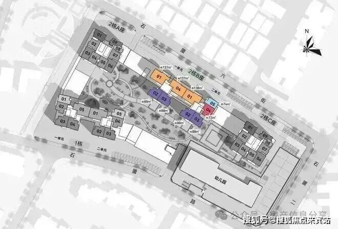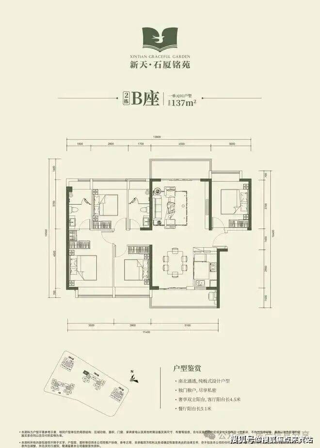 2栋B座一单元01、04户型、2栋B座二单元01户型:面积约为137-138㎡的4房2厅2卫;