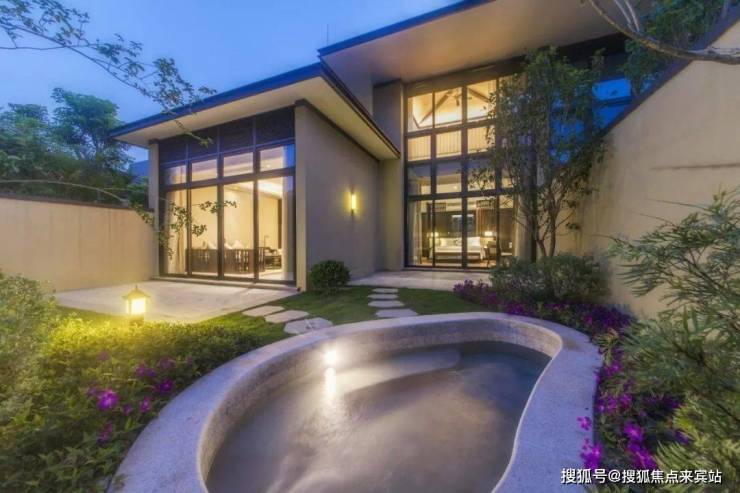 错落布局,让每户院内私藏一池天然含氡梳打温泉。